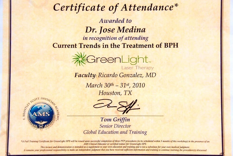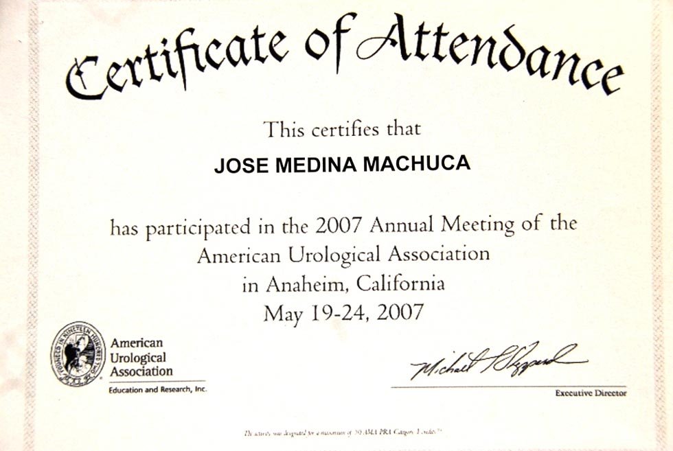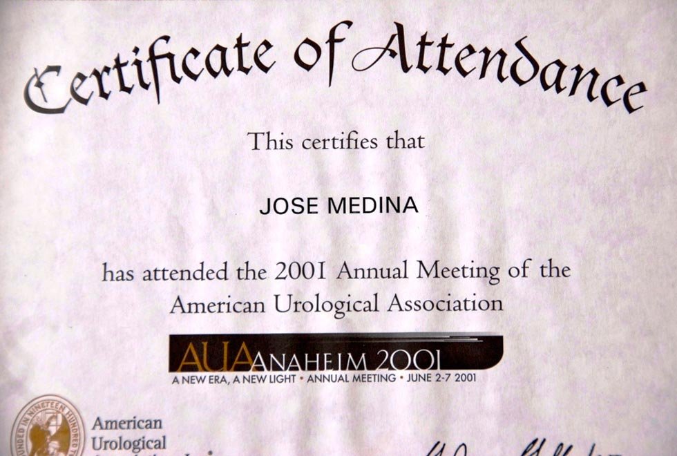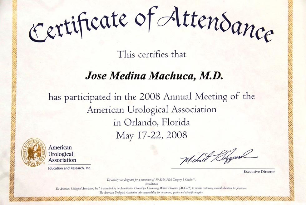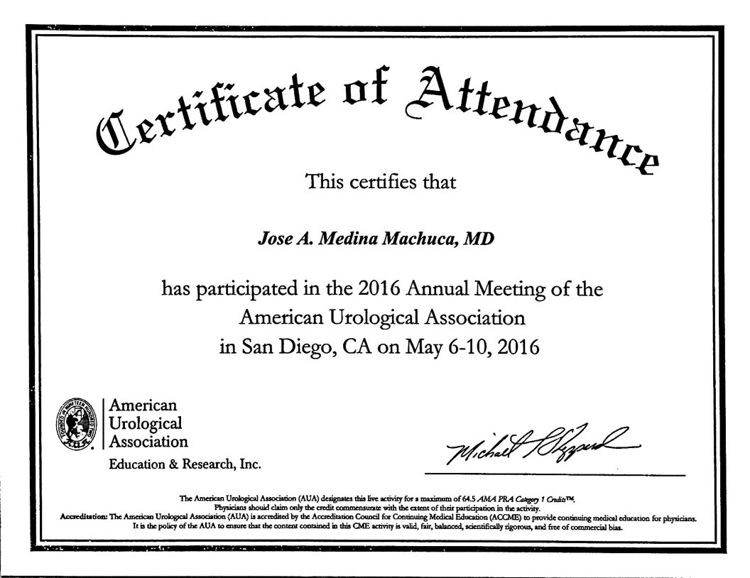 American Urological asociation que lo acredita como miembro correspondiente.   www.auanet.org