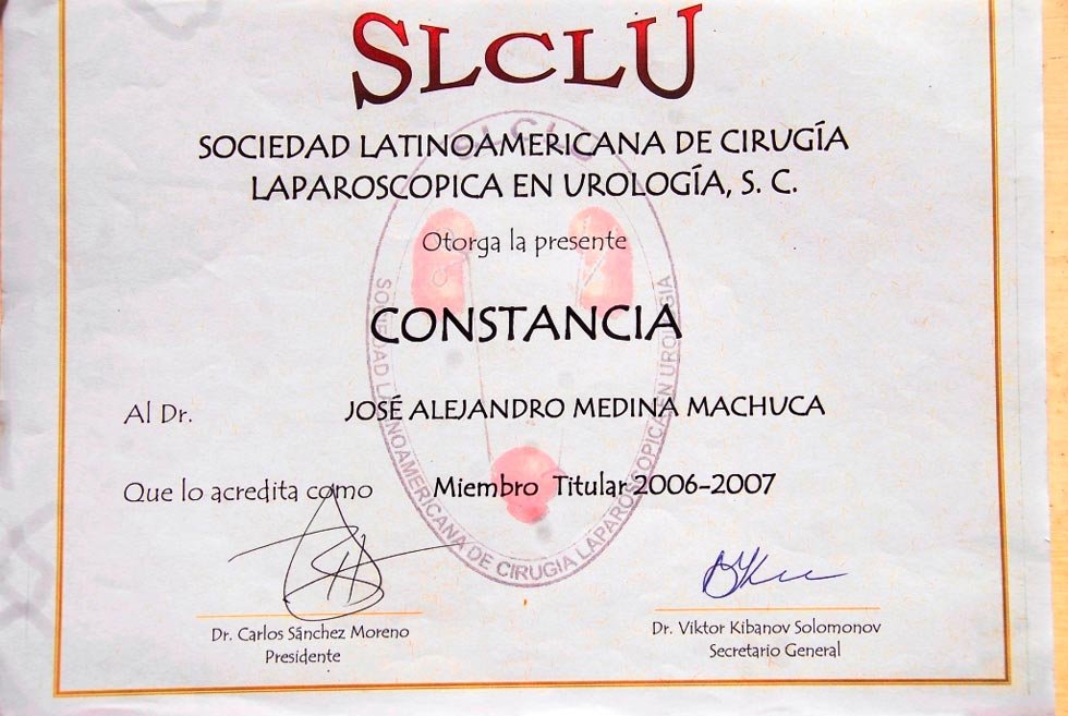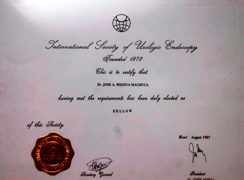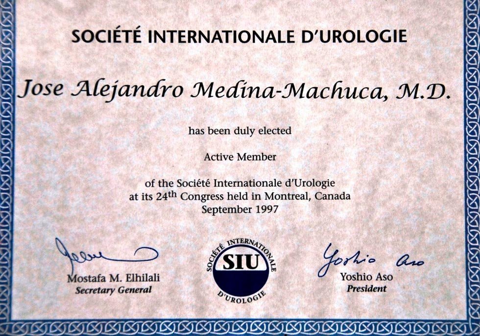 Internacional Societe of urology que lo acredita como miembro titular. www.siu-urology.org