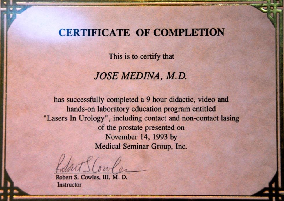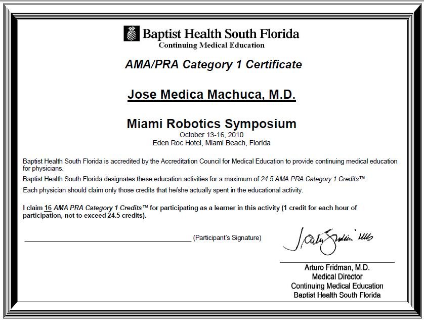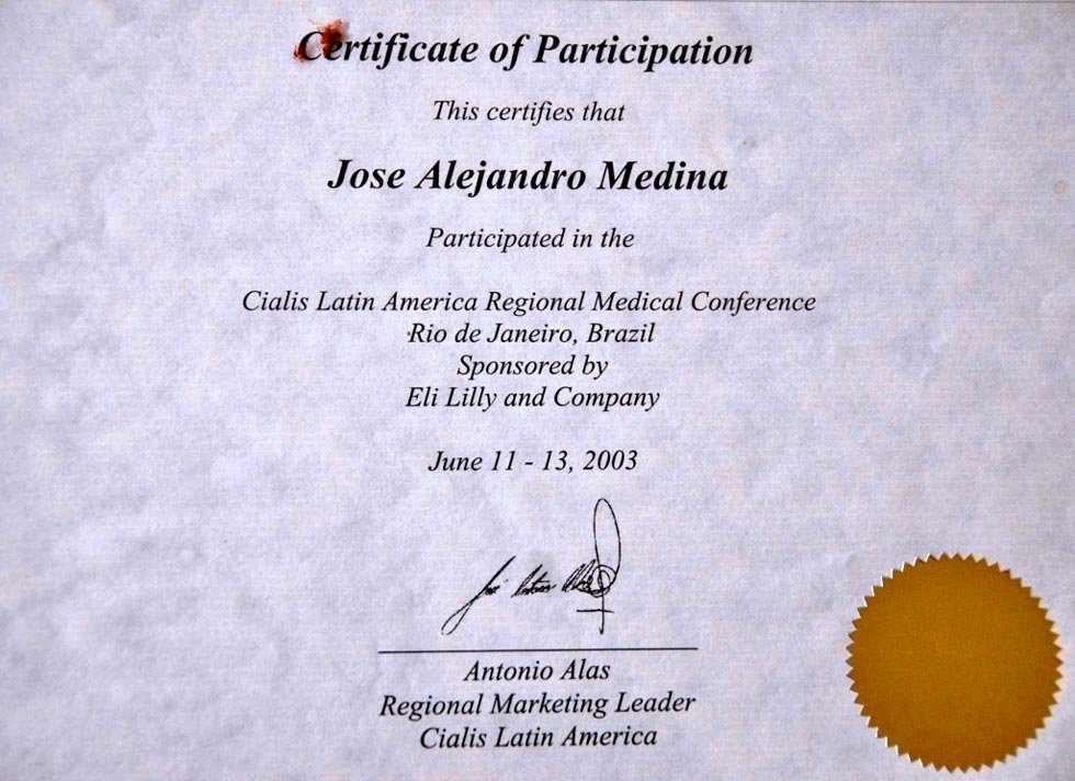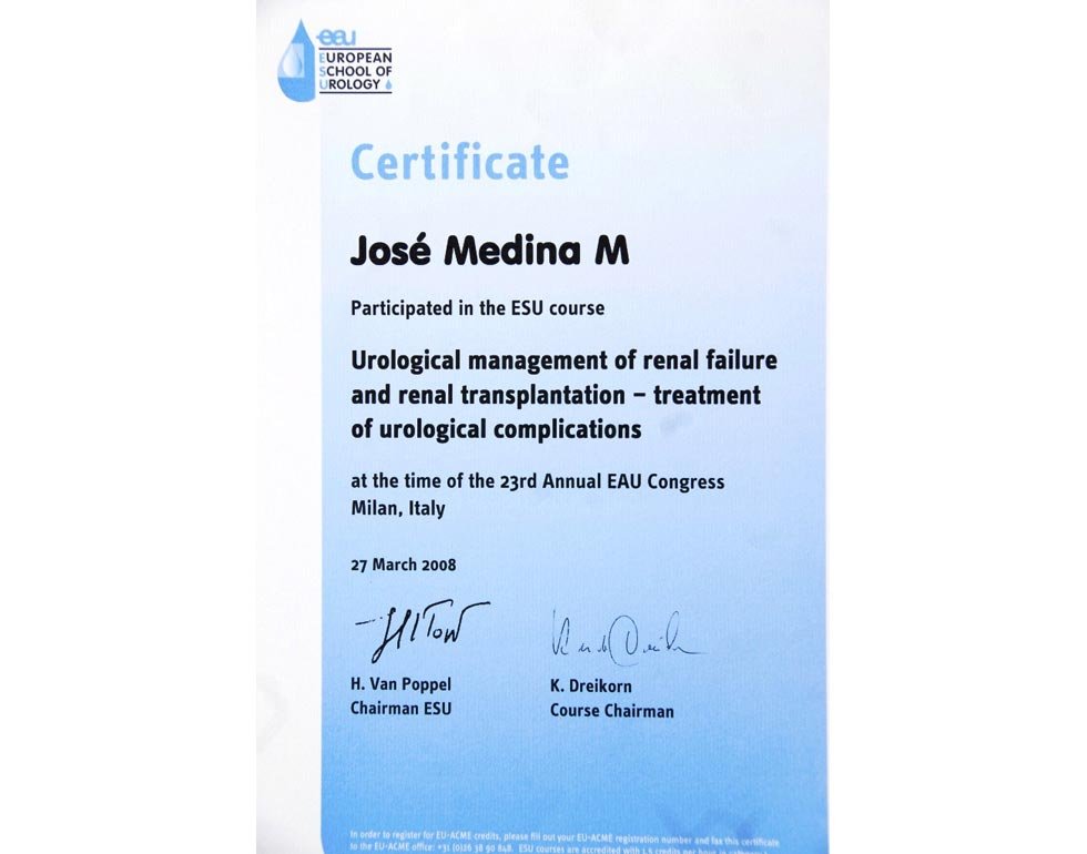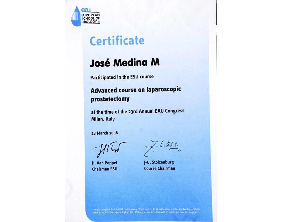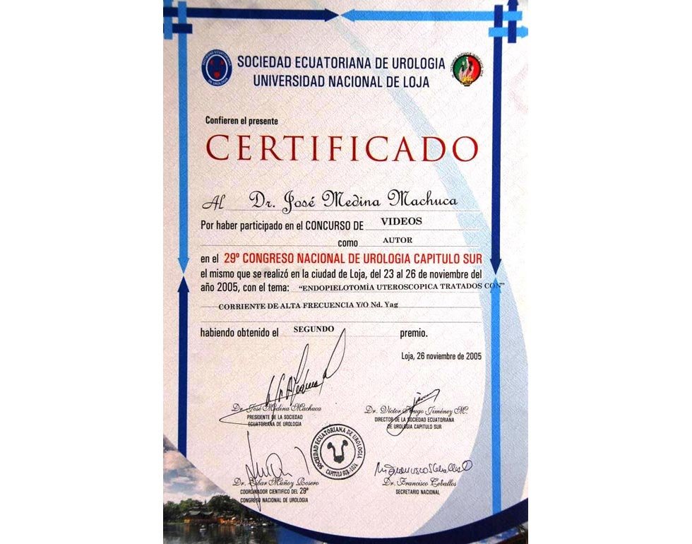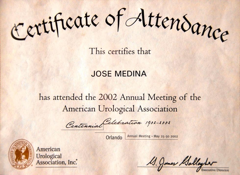 Certificado que el Dr. José A. Medina M., fue nombrado CHAIRMAN de la Sesión de Videos Moderados “VIDEO TOPICS IN UROLOGY”, octubre 5 en el 27th congreso de la Sociedad Internacional de Urología.  Honolulu – Hawaii