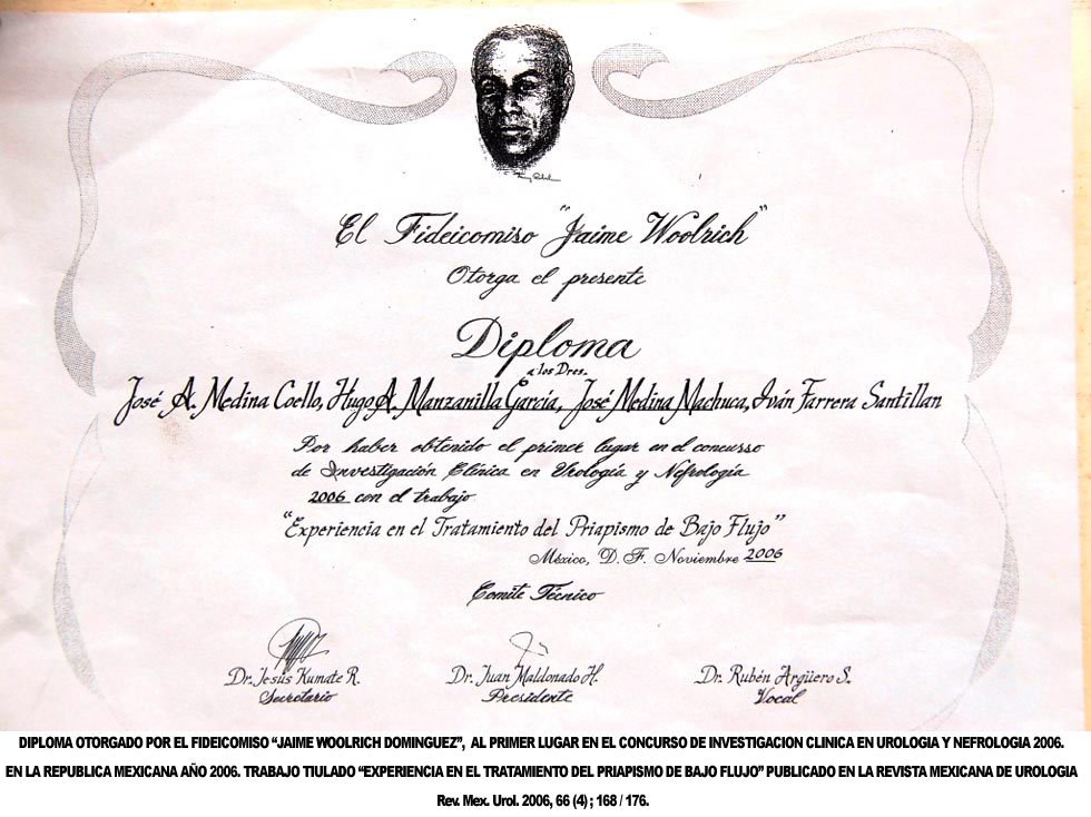 BJU British Journal of urology International.  ISCHEMIC PRIAPISM A NOVEL EASY AN EFFECTIVE TECHNIQUE FOR TREATMENT (PUNCTURE SHUNT). J. MEDINA MACHUCA, JAM GODINEZ, MEDINA COELLO J.   Hospital Santa Inés, Urología.  Cuenca – Ecuador.  Hospital General de la SSA.  México.  BJU Vol. 84. Sulement pág. 25.  Octubre, 2004.