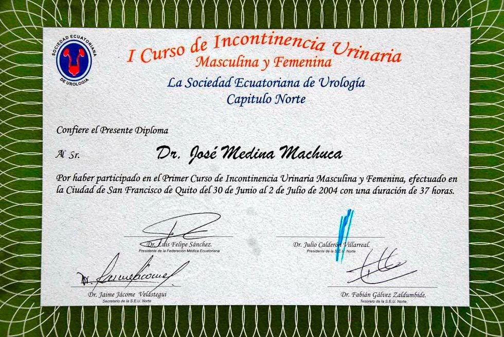 Certificado de la Sociedad Ecuatoriana de urología como miembro titular www.seurologia.com.